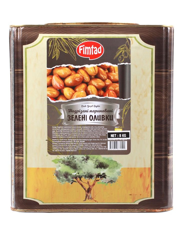 Fimtad Оливки зелені надрізані мариновані з кісточкою 8 кг