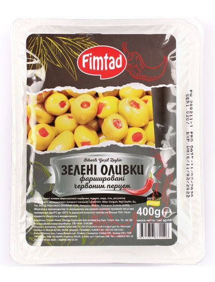 Fimtad Оливки зелені фаршировані червоним перцем 400 г