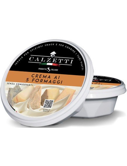 The 5 CHEESE CREAM народжується з добірки найкращих італійських сирів. Парміджано Реджано, Горгонзола, Азіаго, Проволоне Вальпадана та Пекоріно поєднуються, щоб створити смачний і захоплюючий крем.