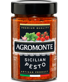Склад: помідори черрі сушені (45%), олія соняшникова, базилік (15%), сіль, перець чилі червоний, часник. Підкислювач: лимонна кислота. Антиоксидант: аскорбінова кислота. Сицилійський песто є одним із чудових продуктів, народжених завдяки безпомилковому смаку типових інгредієнтів...
