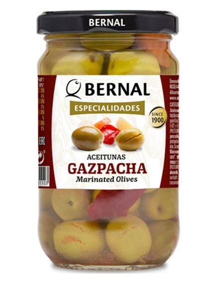 З інтенсивно-зелених оливок сорту Sevillian Verdial ми в Aceitunas BERNAL готуємо ці оливки, розділені та приправлені в середземноморському стилі, поєднуючи їх із різними заправками, такими як скибочки моркви, маточна цибуля, часник, лавровий лист, перець чилі та паприка. Традиційне приготування з найкращої сировини, яке подобається всім любителям оливок і чудово поєднується з вибраними стравами, закусками та салатами всіх видів.