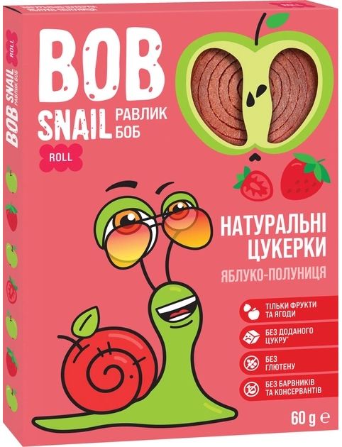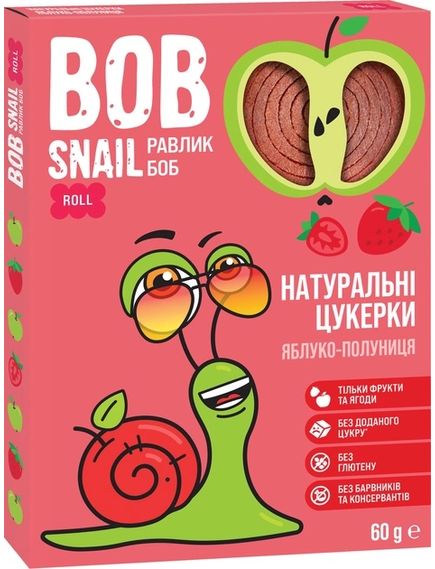 Bob Snail Цукерки фруктові Яблуко-Полуниця 60 г