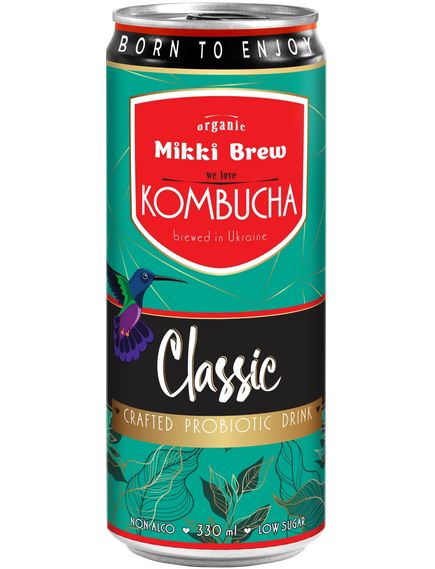 Mikki Brew Classic - це класична комбуча в зручній упаковці об'ємом 330 мл. Комбуча – це напій, який виробляється шляхом ферментації солодкого чаю за допомогою симбіотичної культури бактерій та дріжджів. Цей процес надає комбучі унікальні смакові та ароматичні характеристики, а також збагачує напій корисними речовинами.