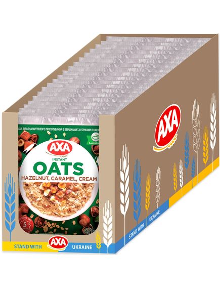 Склад: пластівці вівсяні (65,2 %), різаний і карамелізований фундук 13,5% (фундук, цукор), цукор, вершки сухі (5,0%), суха молочна сироватка, сіль кухонна, ароматизатор «ваніль». Може містити сліди пшениці, горіха кеш’ю та мигдалю.