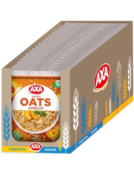 Склад: пластівці вівсяні, цукор, шматочки кураги, суха молочна сироватка, сіль, ароматизатор «ваніль».