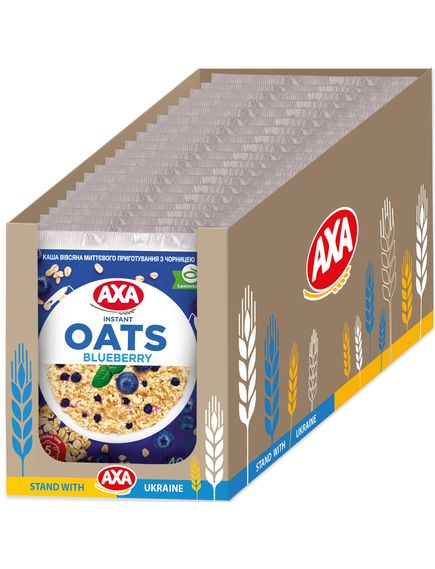 Склад: пластівці вівсяні 73,2%, цукор, сушена чорниця 3%, суха молочна сироватка, сіль кухонна, ароматизатор ваніль.