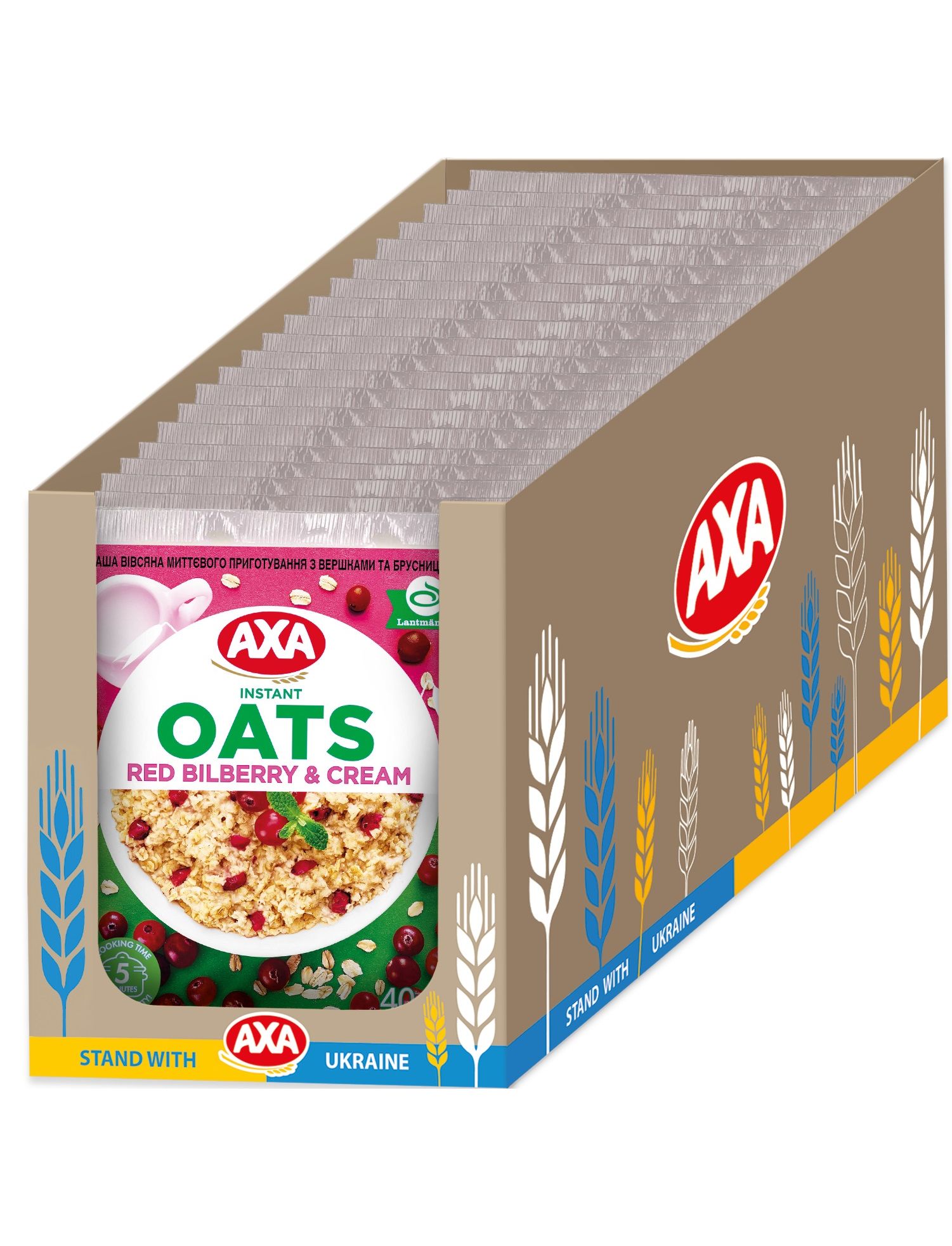 Склад: пластівці вівсяні 67,5%, цукор, вершки сухі 8%, брусниця сублімована 2,5%, сіль кухонна, ароматизатор «ваніль». Може містити сліди пшениці, горіха кеш’ю та мигдалю.