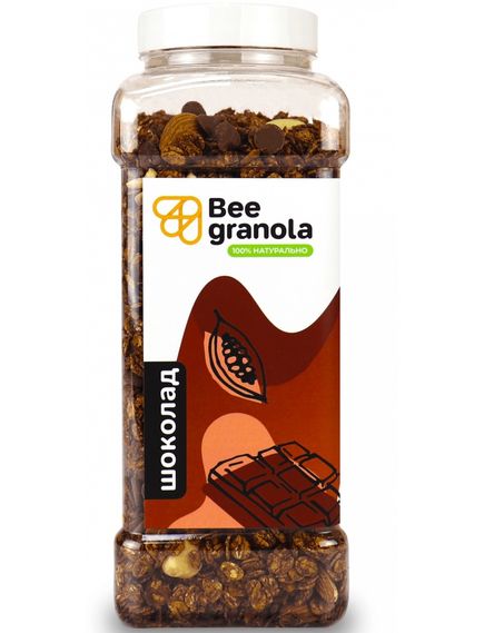Склад: пластівці вівсяні, пластівці пшеничні, пластівці ячмінні, мед натуральний, шоколад, фундук, мигдаль, арахіс, какао, олія кокосова, глюкозно-фруктозний сироп, вода питна, сіль.