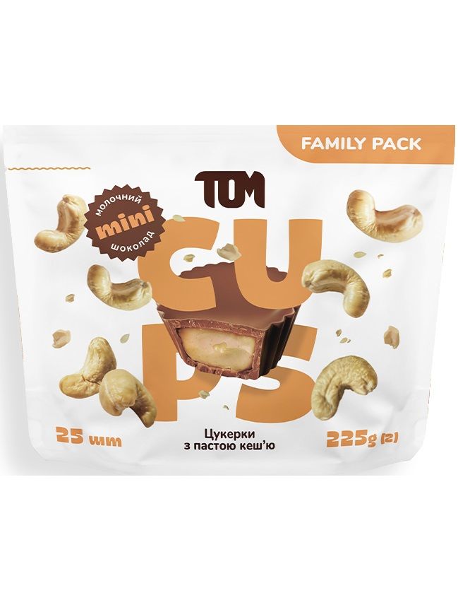 Склад: молочний шоколад, паста кеш'ю (90,5%), глюкозно-фруктозний сироп, соєвий лецитин, сіль морська. Може містити сліди фундука, мигдалю, кеш'ю.