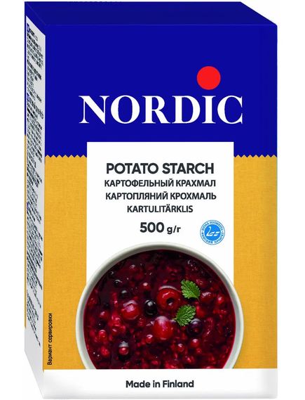 Високоякісний картопляний крохмаль із позднесілих сортів картоплі, вирощених у Фінляндії, — чудова основа для кисел, соусів, фруктових начинок та інших кулінарних страв.