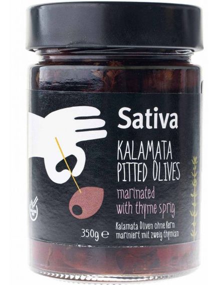 Sativa Оливки Каламата без кісточки мариновані з чебрецем 350 г