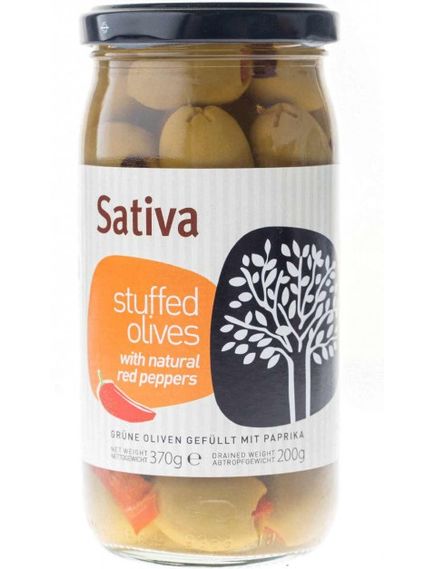 Sativa Оливки зелені фаршировані червоним перцем 370 г