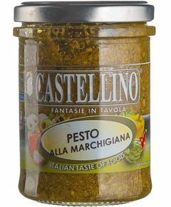 Склад: базилік 25%, СИР 14,7% (МОЛОКО коров'яче та овече, сіль харчова, сичужний фермент), оливкова олія екстра вірджин, соняшникова олія, КЕДРОВИЙ ГОРІХ, майоран 7%, сіль харчова, оцет з білого вина, регулятор кислотності (кислота молочна), антиоксидант (аскорбінова кислота).