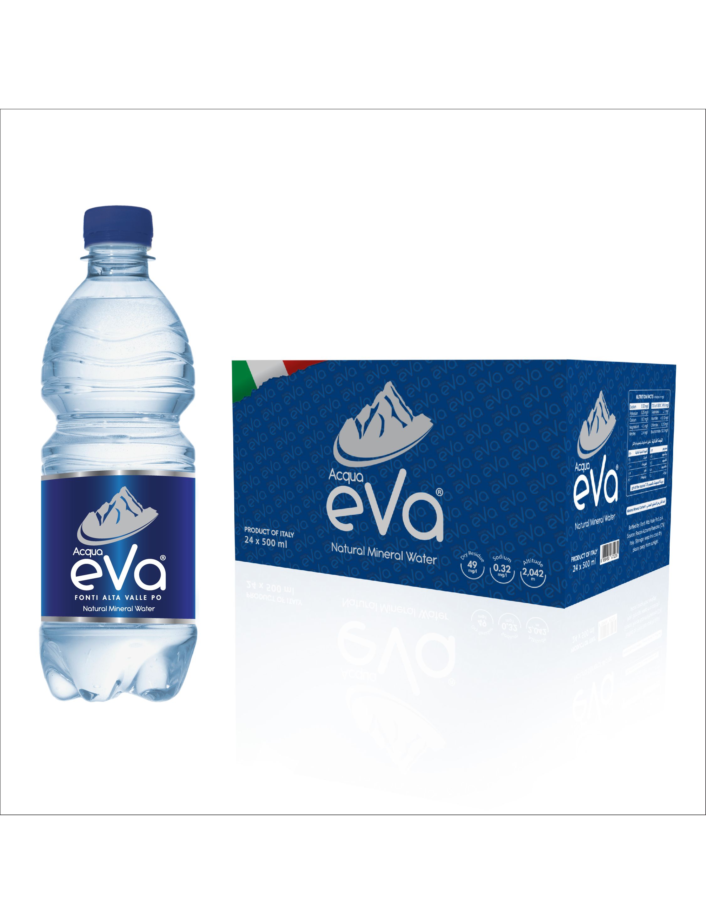 Acqua Eva входить до числа вод з найменшим вмістом натрію, лише 0,00003%.