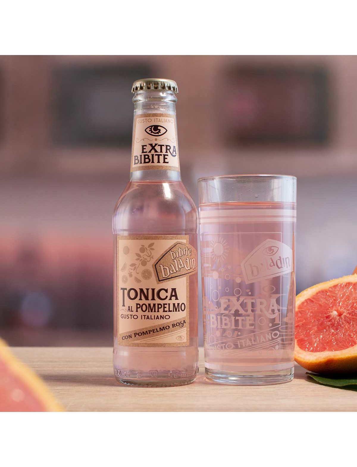 Tonica al Pompelmo Baladin виділяється з першого погляду своїми рожевими відтінками. Баланс між цитрусовим ароматом рожевого грейпфрута та гіркими нотами хініну робить цю тонізуючу воду особливо смачною та освіжаючою.