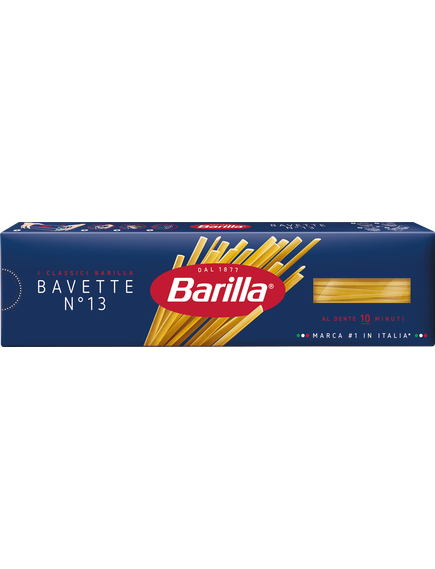 Паста Barilla Баветте № 13 дозволить насолодитися справжньою італійською кухнею у всьому її різноманітті! Ця плоска паста, яку в Італії ще називають лінгвіні, відмінно поєднується з різними соусами і стане прекрасною основою для безлічі страв. Паста Barilla Bavette № 13 виготовляється з твердих сортів пшениці, не розварюється, не злипається і добре утримує соуси, щоб ви могли оцінити її багатий багатий смак.