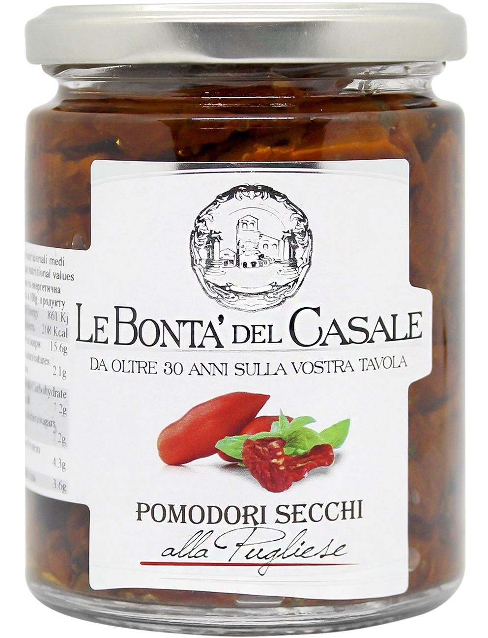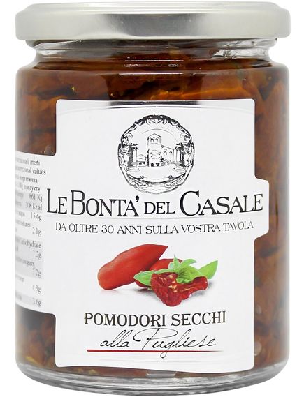 Дозрілі на сонці сушені помідори з Апулії, збережені в олії та приправлені травами та спеціями для створення тонкого балансу ароматів.