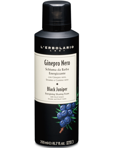 Піна для гоління «Чорний ялівець» із підбадьорливим і енергійним ароматом ніжно та дбайливо готує обличчя до гоління, тонізуючи шкіру завдяки екстрактам чорного ялівцю та чорного кмину. Альфа-бісаболол, що міститься в рецепті, запобігає почервонінню, залишаючи шкіру свіжою та готовою до ніжної зустрічі з бритвою. Його корисний вплив буде ідеальним у поєднанні з бадьорим лосьйоном після гоління з лінії Чорний ялівець.