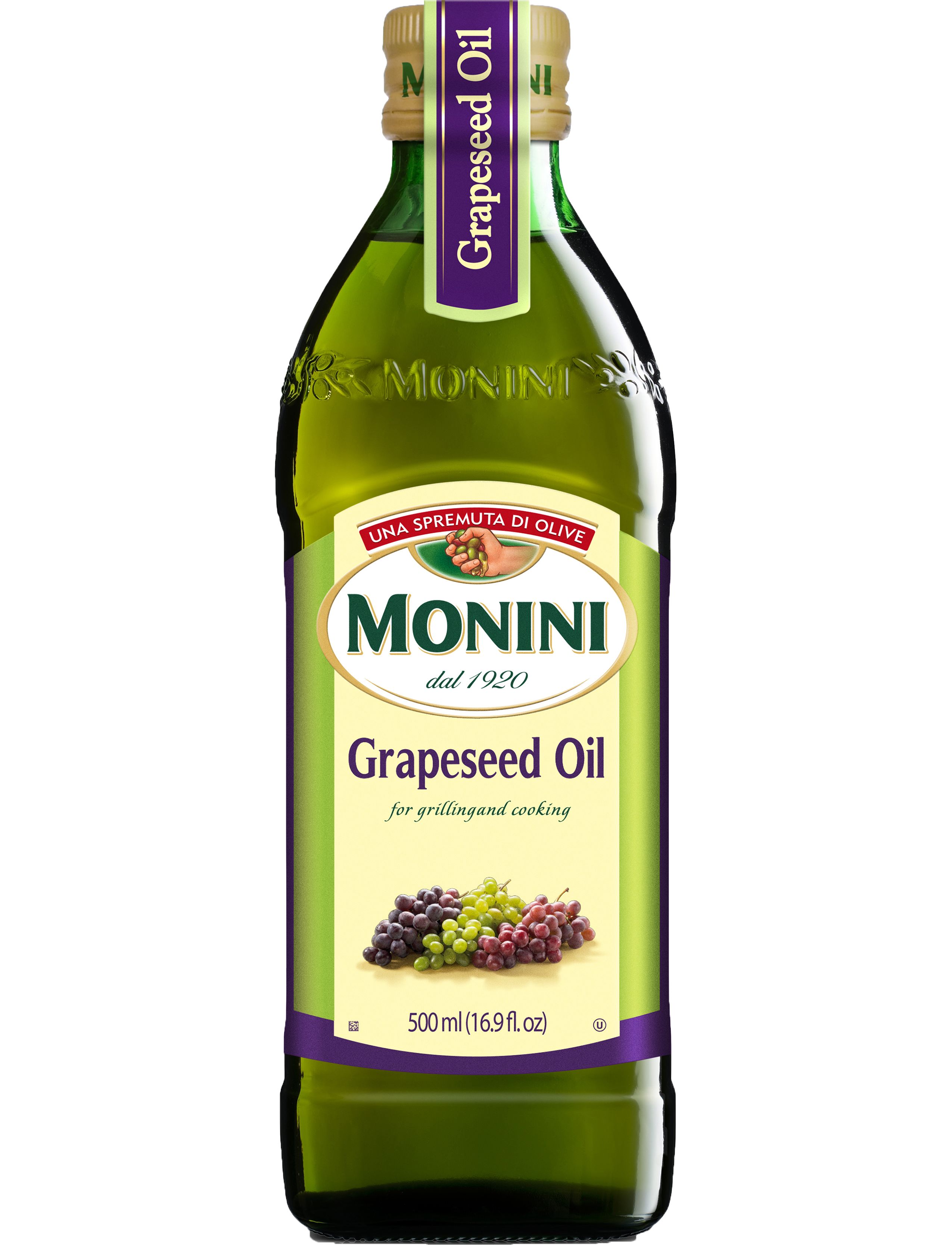 Олія з виноградних кісточок — продукт пресування кісточок винограду, що містить у високій концентрації (до 78%) лінолеву кислоту. Олія з виноградних кісточок отримують методом холодного пресування. Саме ця технологія, на відміну від екстрагування, дає змогу зберегти в олії всі необхідні біологічно активні речовини. Олія з виноградних кісточок Monini виготовляється в Італії та є логічним продовженням лінійки оливкових олій, призначене для людей, які піклуються про своє здоров'я.