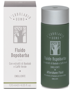 Флюїд після гоління для чоловіків L'Erbolario Uomo. Флюїд із приємною та свіжою текстурою, який заряджає енергією, захищає та запобігає старінню. З екстрактами баобаба та зеленої кави. Зроблено в Італії.