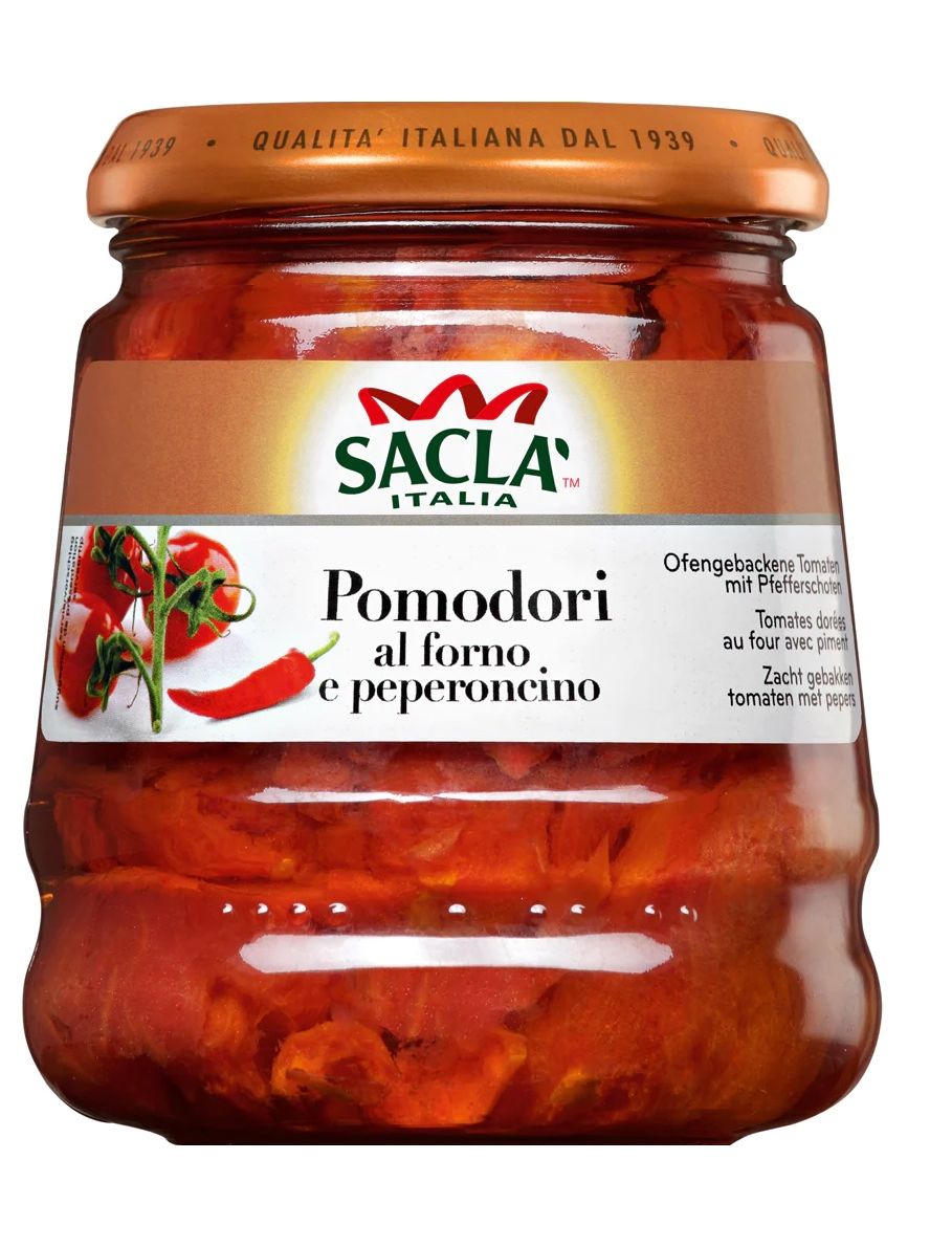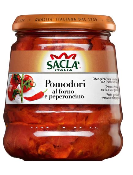 Інноваційний делікатес з італійських сливових напівсушених помідорів, які очищають від шкірки, ретельно запікають у духовці, а потім маринують в олії та перчику чилі для пікантного смаку. Ідеально підходить як заправка для вашої пасти, для смаку Arrabbiata або чудовий для приготування брускет та піци.