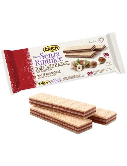 Crich, Италия / Wafer al Crema Nocciola / хрустящая вафельки с добавлением нежного крема c лесными орешками без сахара / обладают особо хрустящей текстурой и насыщенным вкусом / идеально сочетается с кружкой горячего кофе, ароматного чая или молочного какао / в качестве подсластителя используется мальтит / 75% крема / вариант сладкого перекуса для детей и взрослых / удобный формат упаковки / 175 г