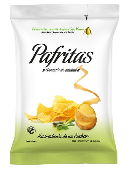 Неперевершений кайф для любителів хрусткої картоплі. Смажені на високоякісній оливковій олії першого віджиму з Ріохи та посипані одним відсотком солі Середземного моря, вони є основою асортименту Pafritas. Все, що завгодно, але не «звичайне» хрустке.