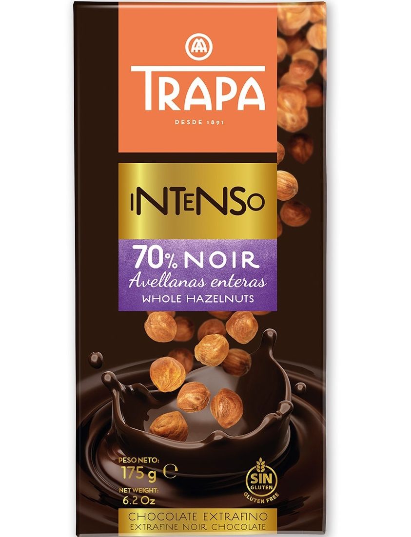 Склад: какао-паста, цукор, фундук (20%), какао-порошок знежирений, какао-масло, емульгатор (соєвий лецитин) і ароматизатор. Какао: мінімум 70%. Може містити молоко та інші горіхи. Без глютену.