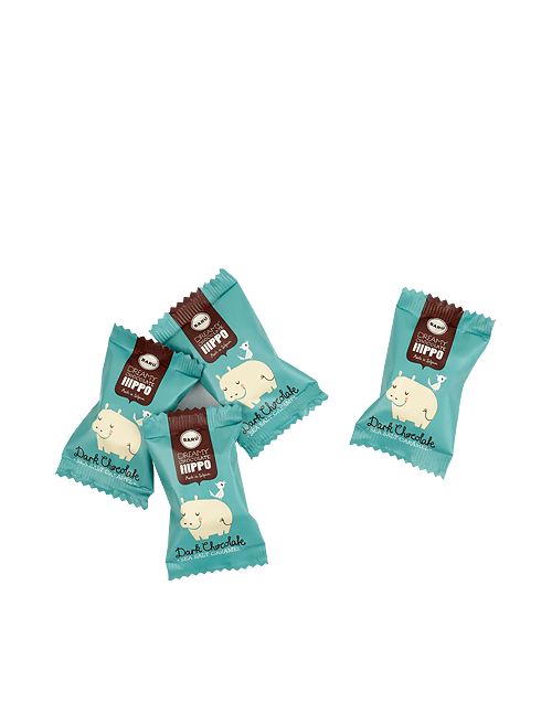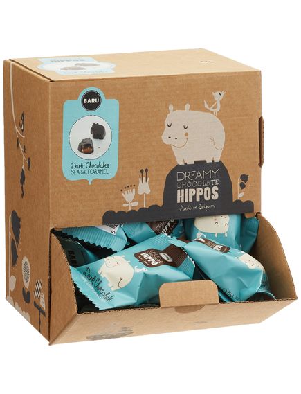 Шоколадні цукерки у формі бегемота, виготовлені з чорного шоколаду та наповнені смачною начинкою з карамелі з морської солі.