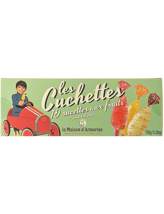 Les Cuchettes - старомодні льодяники ручної роботи. У красивому пеналі знайдіть 10 старомодних льодяників із натуральними фруктовими смаками.