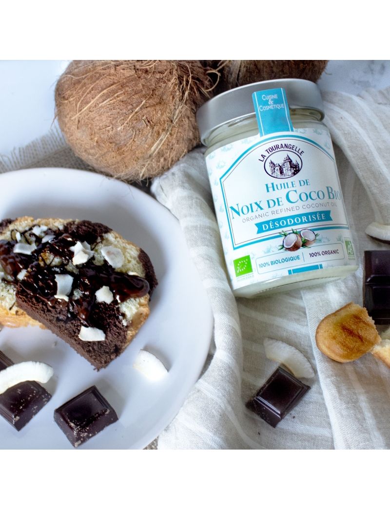 - Олія, виготовлена з органічних кокосових горіхів, делікатно віджата та очищена для отримання виняткової олії без запаху та нейтрального смаку