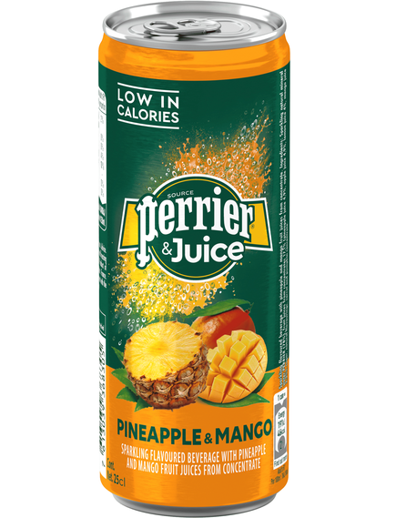 Що відбувається, коли Perrier змішується з соком ананаса та манго? Що ж, надзвичайне буває! Новий Perrier & Juice - Pineapple & Mango - це смачна суміш фруктових соків, яка приємно наповнена стрибаючими бульбашками, щоб освіжити та втамувати вашу спрагу. Perrier & Juice складається в середньому з 78% газованої мінеральної води Perrier, 17% фруктового соку, дещиці натуральних ароматизаторів і, звичайно, екстраординарного смаку, і пропонує здорову альтернативу газованим безалкогольним напоям. Потрібно щось позитивне, щоб сумувати? Тепер ви можете побалувати себе фруктовим напоєм без штучних підсолоджувачів у дорозі в будь-який момент дня! Задовольни свою тягу до шипучого без жодної провини та виконуй екстраординарне!