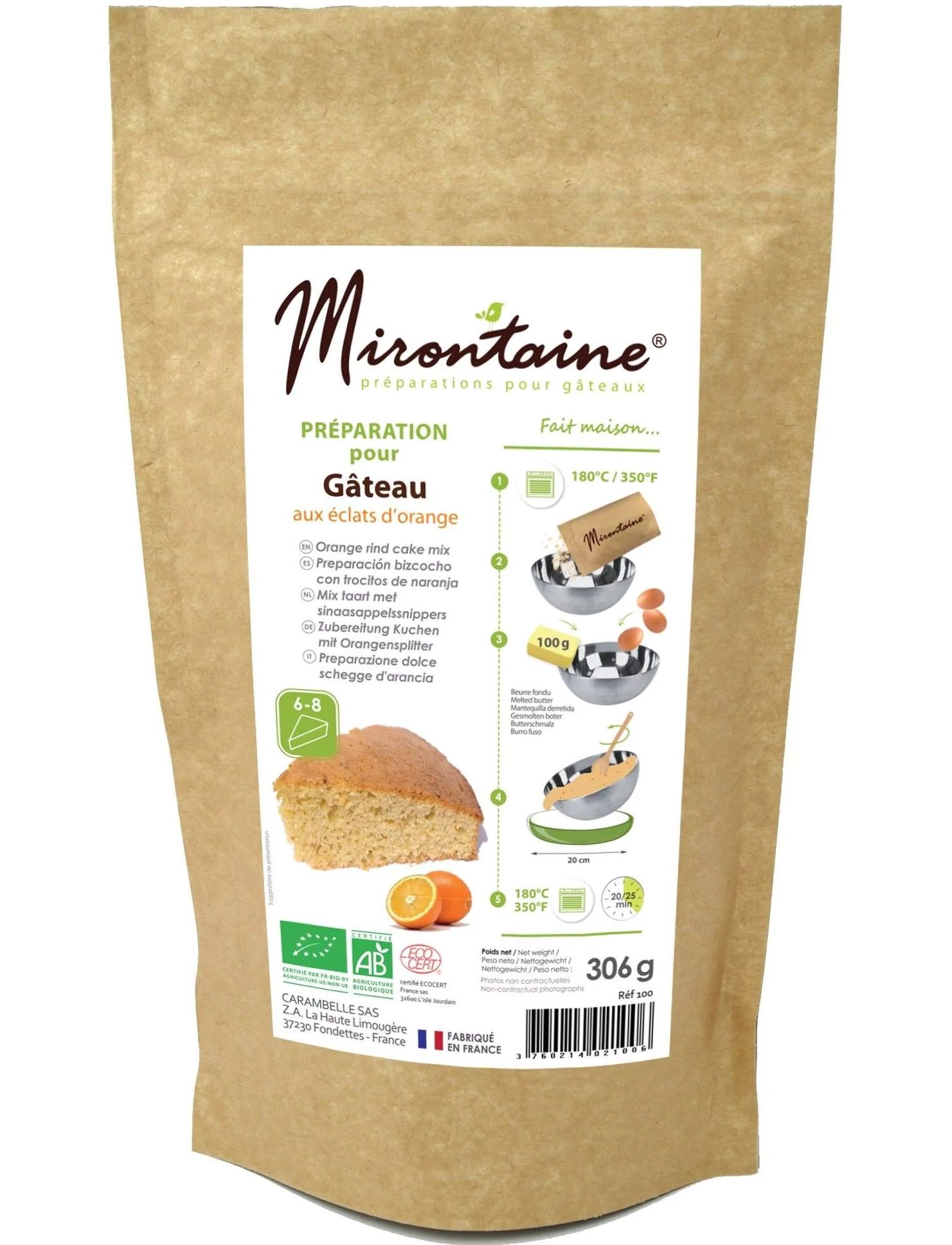 Mirontaine Суміш для випічки Апельсинові Кекси органічна 306 г