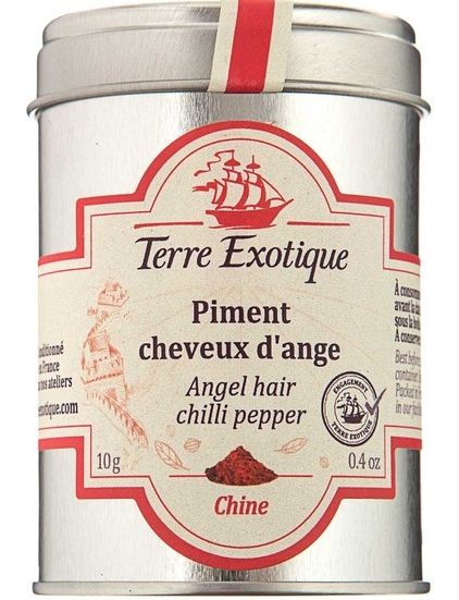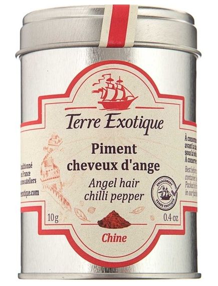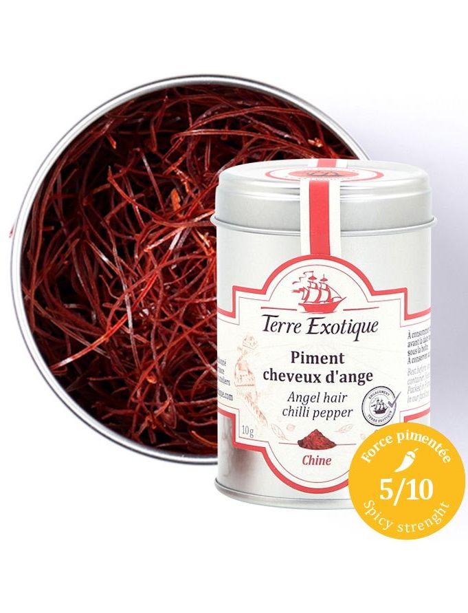 Це легке, тонке, м’яке волосся ангела збирають у регіоні Тяньцзінь на північному сході Китаю. Зрізані після збору врожаю, ці легкі нитки мають теплі ноти, перцевий і фруктовий смак. Вони 5/10 (сильні) за шкалою Сковілла, тобто гостріші, ніж перець Espelette, і менш гострі, ніж перці Ring of Fire .