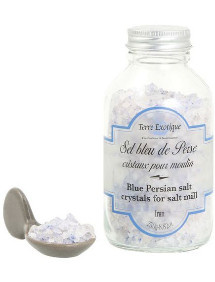 Terre Exotique - Франция. Голубая Персидская соль. Родом из иранского города Семна́н, соль добывается в горном массиве Эргурз. Персидская голубая соль - это ископаемая соль, кристаллы которой образовались 100 миллионов лет назад в докембрийских морях. Чрезвычайное давление, оказываемое тектоническими движениями плит, привело к образованию кристаллов совершенно особой структуры. В результате, соль имеет форму крупных сухих и чистых гранул нежно-голубого цвета. Цвет гранул варьируется в зависимости от природного содержания калиевой руды. Идеально подходит для измельчения в мельнице и приготовления разнообразных блюд мировой кухни: от изысканных закусок и салатов на основе свежих сезонных овощей, до морепродуктов, рыбы и блюд из мяса. Персидская голубая соль, богатая кальцием, железом и калием, обладает многими питательными качествами. Ее потребление помогает улучшить циркуляцию кислорода в крови, укрепить сердце, поддерживать хорошее кровяное давление и облегчить пищеварение. Голубая Персидская соль Terre Exotique станет уникальным дополнением к Вашим блюдам и украшением стола. Представлена в минималистичной стеклянной бутылочке с крышкой для удобно хранения. Вес продукта - 250 г.