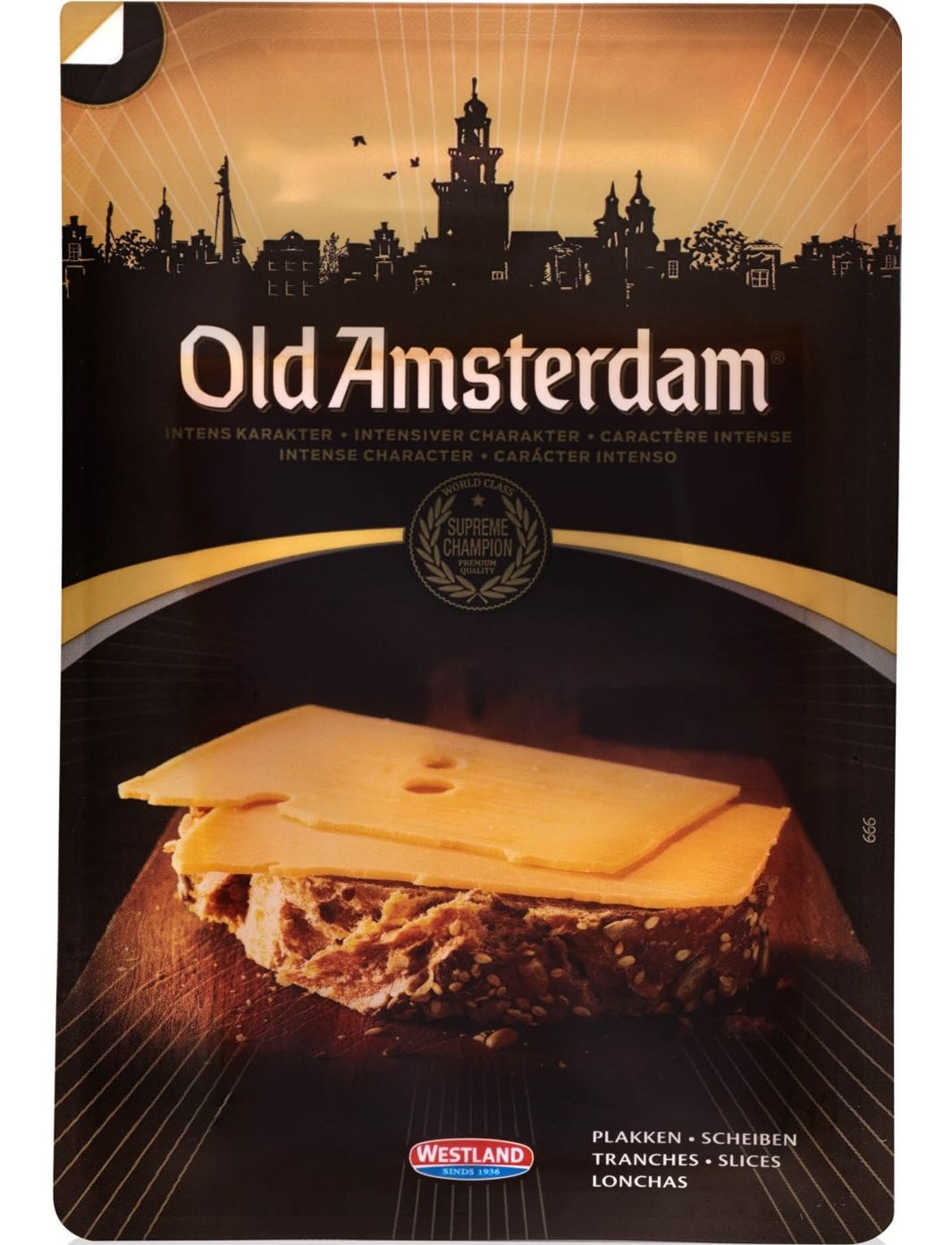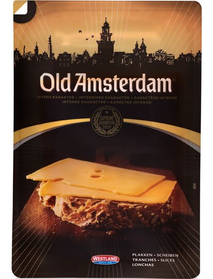 Старий Амстердам - зрілий сир, пікантний з легкою солодкістю. Він багатий дозріваючими кристалами, але його можна легко нарізати. Натуральний продукт, дозрівав приблизно 8 місяців на дерев'яних полицях. Точний термін дозрівання залежить від сезону.
