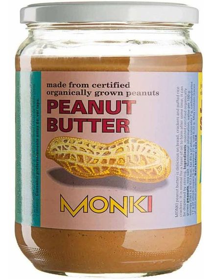 Арахісове масло MONKI чудово поєднується з хлібом, крекерами та рисовими коржами. Це нормально, якщо через деякий час утворюється масляна плівка. Тоді достатньо перемішування. Склад: смажений арахіс із сертифікованого органічного вирощування, морська сіль. Може містити сліди горіхів і кунжуту.